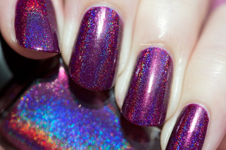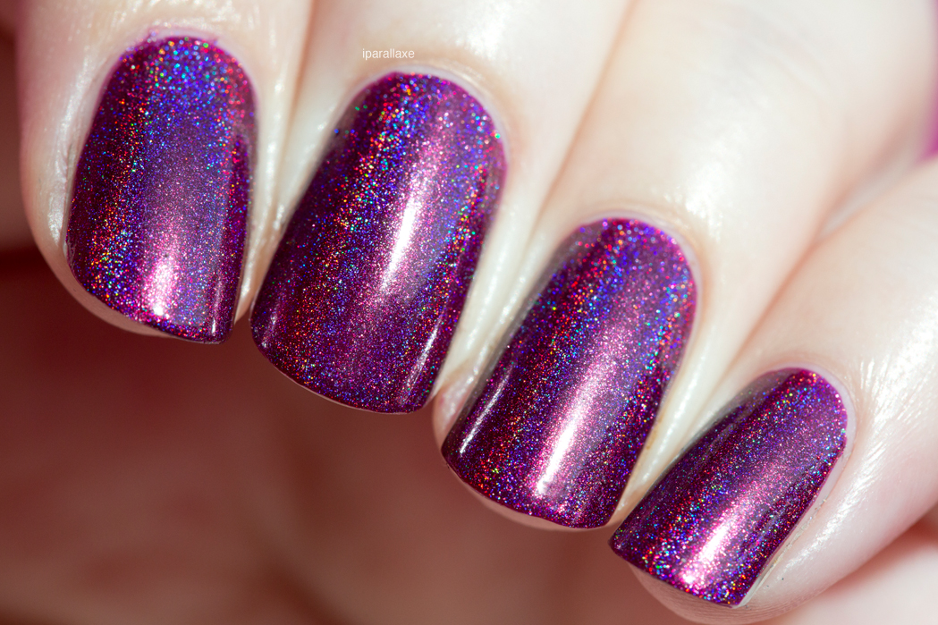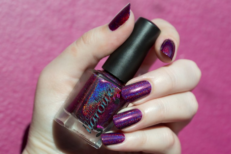 Aujourd’hui, pas trop de blabla, mais juste des photos du très joli Good Golly Miss Molly de chez CBL. Il est sorti en édition limitée il y a environ 3 semaines, je ne sais pas trop s’il sera présent aux prochains réassorts… Il s’agit d’une version un peu plus foncée de Dirty Diana, c’est à dire un framboise/pourpre holo, de toute beauté !