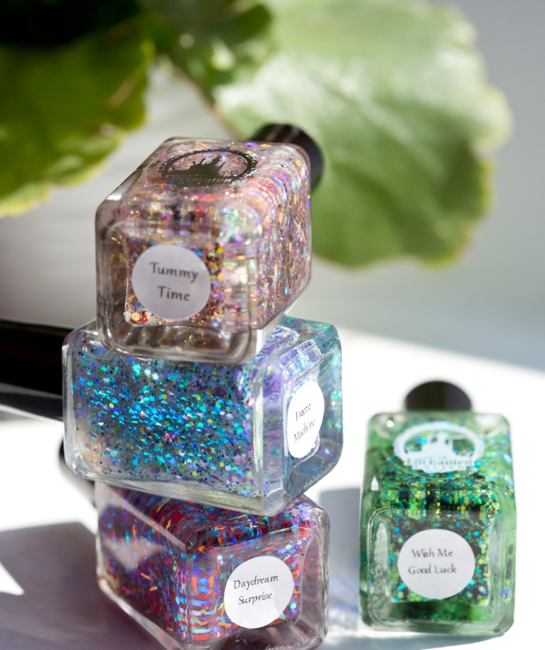 Comme promis dans le titre de l’article, petit bonus avec des photos prises ce matin de ma collection Love a lot of glitters qui se remplit petit à petit, puisque j’ai reçu Wish My Good Luck et Tummy Time hier ! il ne me manque plus que Tenderheart… *petit Tenderheart, où que tu sois, si tu m’entends et que ta maman ne t’aime plus, viens de me rejoindre !* ^^