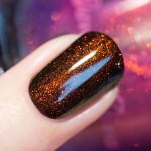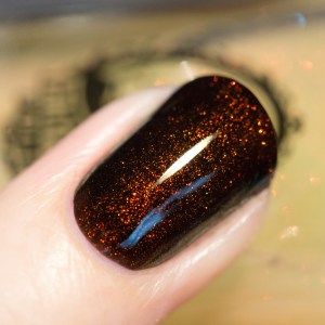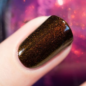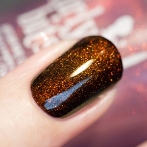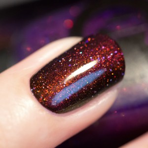 Pareil pour moi, je l’ai zappé à l’époque et j’ai ensuite énormément regretté… Il est toujours disponible sur le site de Jeannie Vianney je crois, mais bon 48$ quoi –‘ c’est sûrement plus rentable de prendre un de ceux de la liste comme le Smitten et de l’agrémenter d’un topcoat holo comme le Glitter Gal galaxy :)