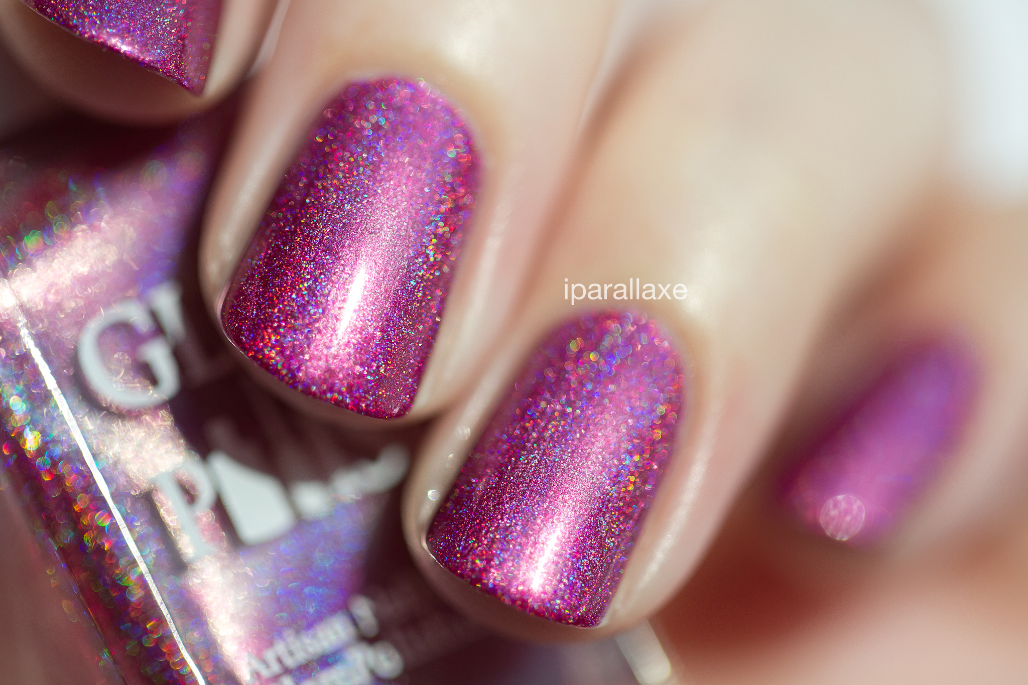Cette collection est plutôt différente de tout ce que Rachel a pu créer ces derniers mois. Ici, on oublie les paillettes et les flakies un peu bling, puisqu’on retrouve 9 holos linéaires au fini un peu métallique. Une texture hyper lisse, couvrante en 2 couches, c’est très agréable. Comme d’habitude, toutes les photos sont prises au soleil, en lumière naturelle, sauf les bottles shots, pris sous spots et qui ressortent plus saturés.