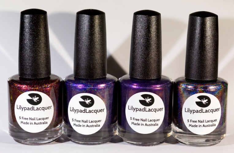 Il y a quelques jours, j’ai reçu ma commande Lilypad Lacquer. Raisonnable (lol) je n’avais pris que 4 teintes parmi les dizaines que propose la marque, et je dois dire que je suis bluffée. Vous vous souvenez peut-être de True Blood, le superbe violet foncé présenté il y a quelques semaines ? eh bin je découvre que tous les vernis de la marque sont de la même qualité : archi pigmentés et donc très couvrants, teintes subtiles, holo canon, bref un sans faute. Comme je le disais sur Instagram, je trouve vraiment que les créatrices d’indies australiennes ont un p’tit quelque chose en plus…
